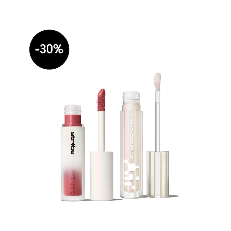 Lipglass Air in Frozen bietet spiegelnden Glanz mit einer schwerelosen, nicht klebrigen Formel für ein angenehmes Tragegefühl. Strobe Beam Liquid Blush in Nitelite ist ein leuchtendes, flüssiges Rouge mit individuell aufbaubarer Farbe, das dem Teint ein strahlendes, frisches Finish verleiht.