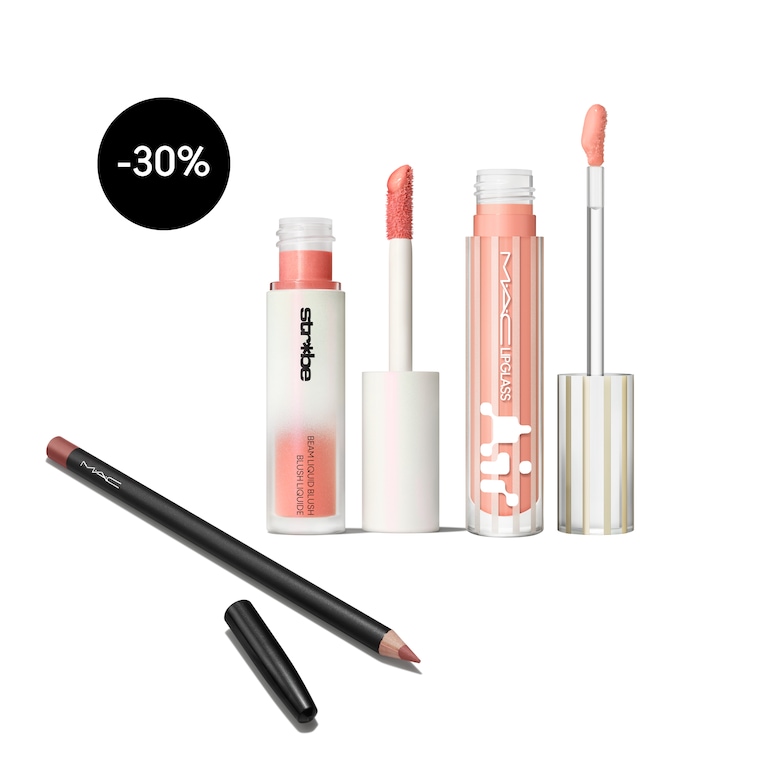 Das Strobe Beam Liquid Blush ist ein leuchtendes, flüssiges Rouge mit individuell aufbaubarer Farbe, das entwickelt wurde, um zu stroboskopieren, zu modellieren und dem Teint ein strahlendes Finish zu verleihen. Lipglass Air bietet spiegelnden Glanz mit einer schwerelosen, nicht klebrigen Formel und sorgt für ein gepflegtes, glänzendes Lippen-Finish. Der Lip Pencil ist ein cremiger, präziser Lippenkonturenstift, der die Lippen definiert, formt und die Lippenfarbe verlängert.